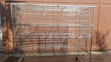Voliera totalmente zincata H 1, 80 m P 0,85 m L 2,10 m 4 ruote girevoli con arresto