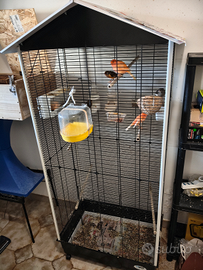 Vendo voliera con canarini da riproduzione maschi e femmine euro 220 leggermente trattabile.ritiro a mano