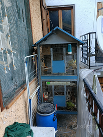 Voliera 180x70x60 in lamiera con doppia apertura con accessori vari .
