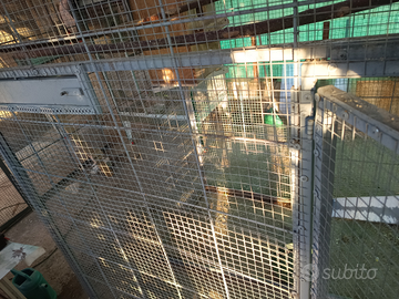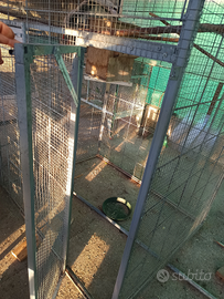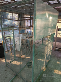 Dimensioni cm.120 x 150 x 195 H Porta da cmq 49 x 100 H Maglia rete mm.19 x 19 filo diam.1,5 Completa di mangiatoia girevole Sportello controllo nido NON SMONTABILE