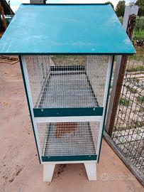 Voliera in buono stato smontabile, misura gabbia inferiore 102 larghezza x 53 profondità x 46 cm altezza. Gabbia superiore 102x53x 70 cm con il tetto.