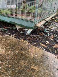 Voliera usata in metallo in buone condizioni, spostabile con ruote, misure: 130 cm x 260 cm x altezza 220-250 cm al centro