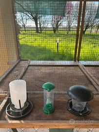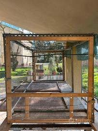 Vendo voliera "fai da te" 200x100x100,porte e cassettiere in legno,telaio fabbricato con uno scaffale,rete robusta,vendo per inutilizzo,all'occorrenza cedo anche i cavalletti per tenerla sollevata da terra in quanto io la utilizzavo così,dispongo anche di vari accessori per allevamento canarini(nidi,uova finte,2 mangiatoie per i semini e un abbeveratoio,e altro ancora.