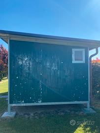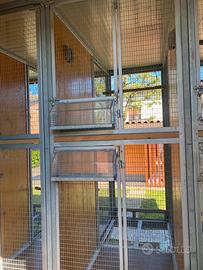 è interamente smontabile, è lunga 5,20m larga 2,87m e alta 2,6m. Ogni scomparto presenta anche le fenestrelle per mettere il cibo e l'acqua dall'esterno. La spedizione è a carico dell'acquirente, se possibile aiutiamo.