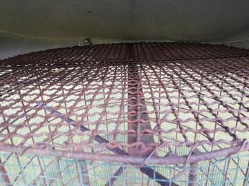 Vendo voliera rotonda costruita con rete metallica molto robusta. Misure 160 cm da terra compreso i piedi di rialzo (17 cm) larga 81 cm. Dispone di 2 porte 28cm x 27 cm