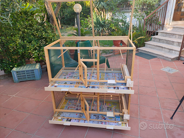 Vendo Voliera doppia su due piani con ruote. Misura totale cm. 100*100*54 Con cassetti per la per la pulizia Comprese mangiatoie e beverini Ritiro in sede, no spedizione