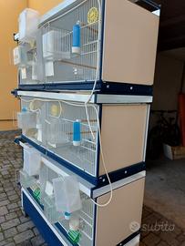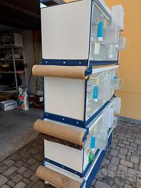 Su carrello con sistema carta,beverini automatici ,compresa di doppi nidi,doppi beverini,mangiatoie interne,mangiatoie antispreco,bagnetti,porta juta,linguine medicinali,doppie reti,separatore cieco ,tutto come da foto.