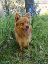 Rusty è un vivace mix volpino di taglia contenuta (10 kg). Lui presenta un mantello a pelo lungo di un bellissimo color arancio, abbinato a dei dolci occhi color miele che catturano subito l'attenzione. Rusty è un vero raggio di sole, con un carattere allegro e pieno di energia, sempre pronto a vivere nuove avventure e a ricevere coccole. Lui è volpino simpaticone che fa il seduto e da la zampa in cambio di premietti e quando va in cerca della palla salta come una cavalleta, uno spettacolo molto divertente! Se stai cercando un amico a quattro zampe che porti gioia e allegria nella tua vita, Rusty potrebbe essere la scelta perfetta! Si affida sverminato, vaccinato e con microchip