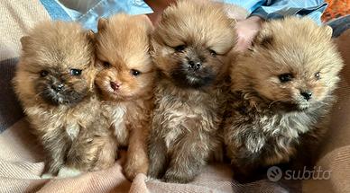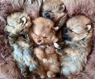 Splendidi cuccioli di razza nati 19/02/26 Volpini della Pomerania: Tre maschi e una Femmina: saranno disponibili da aprile per una nuova famiglia. Il papà ha il pedigree e la mamma no; i cuccioli e la madre si possono vedere da noi. Verranno consegnati con passaggio di proprietà,con microchip, sverminazione e 1 vaccinazione; costo da 1000 - 1300 Solo per gli amanti della razza!