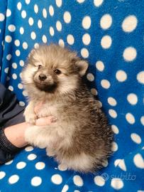 Volpino pomeriana 1 maschio, nato il 31/08/2025. Per informazioni chiamate il I nostri cuccioli vengono consegnati con : - Vermifugo fatto - Antiparassitari interni ed esterni fatti - Uno/due vaccini - Microchip - Libretto sanitario - Certificato di buona salute da parte del veterinario - Abituati a sporcare su la traversina - Ben socializzati - Abc del cucciolo - Cibo per i primi tempi - Prima toilettatura fatta - albero genealogico dell'allevamento - Ricevuta di cessione Su richiesta possiamo consegnare i cuccioli in tutta Italia e all'estero.