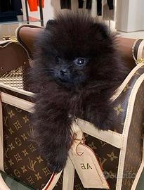 Disponibile cucciolata di volpino spitz di pomerania dal manto nero, maschi e femmine, 3 mesi