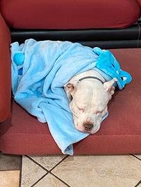 Il mio amstaff ha 7 anni. È bianco con qualche macchia marrone sulle orecchie e gli occhi verdi