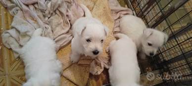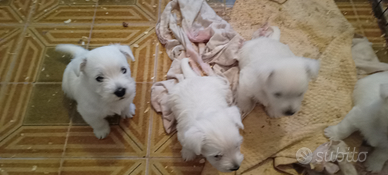 Allevamento riconosciuto ENCI vende bellissimi cuccioli di west highland White terrier,con pedigree, microchip, libretto sanitario e visita medica. Genitori visibili italiani. I piccoli verranno ceduti al compimento dei 60 giorni di età con corredino omaggio per i nuovi genitori compreso sacchetto di mangime e scatolette. Attualmente hanno 40 Giorni e sono prenotabili. Solo amanti animali che li terranno in casa.