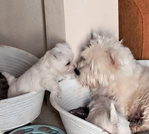 Volete un westy o coccolone o uno mangiatore di scarpe o un giocherellone ? Allora avete aperto l'annuncio giusto! Mamma Belle cerca per i suoi piccoli cuccioli una famiglia che li ami , fa presente che sono nati il 14 gennaio e che saranno affidati, dopo aver effettuato il ciclo vaccinale completo fino all'anno, ciclo antielmintico e microchip, abituati anche a gatti.Dichiara inoltre che affiderà i propri cuccioli solo a persone serie e che riescano a custodirli per tutta la loro vita.