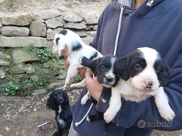 Ancora disponibili alla prenotazione tre maschietti di Cocker Spaniel Inglese, linea da lavoro. I cuccioli sono nati il 18 febbraio e verranno consegnati al compimento dei 60 giorni di età vaccinati e sverminati. I cuccioli sono figli di ottimi cani da lavoro, equilibrati e molto docili, adatti per la caccia e per il tartufo ma anche come simpatici compagni di casa. La taglia è estremamente contenuta (la mamma è sui dieci kg), i cuccioli sono nati in casa e stanno crescendo in ambiente ricco di stimoli. Possibilità di visione senza impegno, previo appuntamento.
