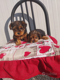 Disponibili bellissimi cuccioli maschi di yorkiepoo taglia mini. Due mesi compiuti. La mamma Yorkshire toy e papà barboncino mini toy red. Già vaccinati, ciclo vermifugo completo, visita veterinaria, libretto sanitario. Cuccioli sani, molto belli, piccoli. Abituati alla traversina. Già pronti per andare nella nuova casa.