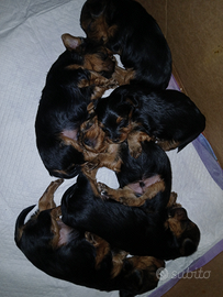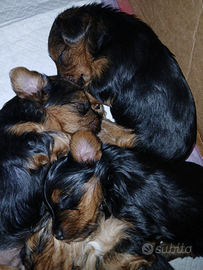 Vendo Yorkshire genitori visibili due femmine e due maschi. Sverminati e successivamente verrano vaccinati ora hanno solo un mese