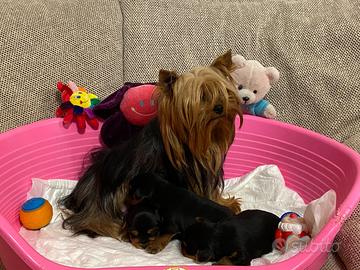 Yorkshire Terrier, taglia piccola, bellissimi cuccioli, molto affettuosi, nati e cresciuti in casa, genitori visibili con importanti Pedigree Enci ed ESENTi dalle malattie genetiche e ereditarie (rilascio copia dei test ufficiali) controllati anche per la lussazione della rotula (certificazioni Celemasche) vendesi. Foto reali, telefonare ore pasti e serali. Tel 3487239143