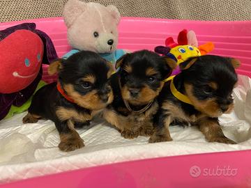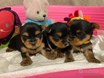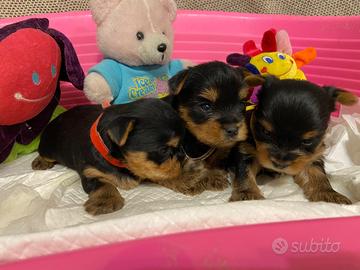 Yorkshire terrier, piccola taglia, bellissimi cuccioli, molto affettuosi e giocherelloni, nati e cresciuti in casa, genitori visibili con importanti pedigree Enci, controllati anche per la lussazione della rotula vendesi. FOTO REALI. Tel. 3487239143