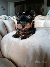 Disponibile: bellissima mini Yorkshire Terrier, femmina di 1,5 mesi con pedigree ENCI, nato nell'amore e nell'adorazione. Al momento della vendita il cucciolo sarà chippato, avrà il passaporto veterinario, sverminato due volte e avrà fatto 2 vaccinazioni. Non ha difetti e malattie genetiche. Ha una chiusura a forbice, un viso da bambino, orecchie piccole, bellissimi occhi grandi, un naso corto, pelo molto folto e un carattere affettuoso ed equilibrato. Le ultime foto di mamma e papà.Spedizioni in tutta Italia.
