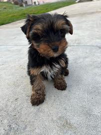 Cucciolo di Yorkshire Terrier, maschio, tre mesi, disponibile per la consegna.