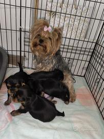 Disponibili bellissimi cuccioli maschi di pura razza Yorkshire terrier. Nati e cresciuti nel ambiente famigliare con entrambi i genitori. Mamma 3 kg papà 2kg. Saranno ceduti con ciclo completo di sverminazione, vaccino, libretto sanitario nazionale.