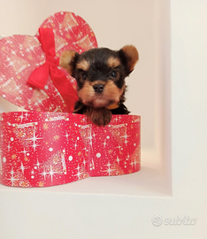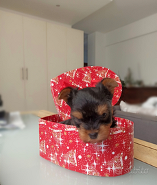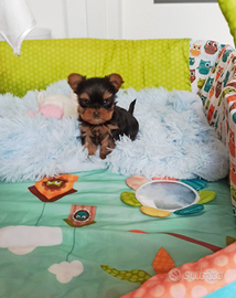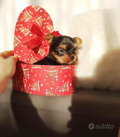 Disponibili bellissimi cuccioli di Yorkshire terrier toy. Genitori entrambi di nostra proprietà, entrambi visibili. Mamma 1,8kg papà 1,3kg. Disponibili due femminucce e un maschietto. Saranno ceduti dopo aver compiuto 60 giorni, metà febbraio circa, sverminati, vaccinati, con microchip e libretto sanitario nazionale. Prezzo 700-750