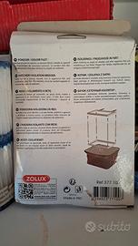 Zolux Nanolife Nursery in rete, una sala parto e isolatore per acquari Questo accessorio è progettato per diverse funzioni pratiche all'interno di un acquario: Riproduzione: Isola le femmine gravide pronte a deporre o a partorire, proteggendo gli avannotti dagli altri pesci. Isolamento: Serve per separare temporaneamente pesci malati, feriti o particolarmente aggressivi dal resto della comunità. Adattamento: Può essere utile per far ambientare gradualmente i nuovi pesci prima di liberarli completamente in vasca. Caratteristiche principali: Dimensioni: Circa 17 x 13 x 12 cm. Materiale: Telaio in plastica rivestito da una rete a maglia fine che garantisce un'ottima circolazione dell'acqua. Installazione: È un modello da appendere al bordo della vasca. Zona di Roma per eventuale scambio a mano: Monteverde, Trastevere, Testaccio