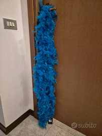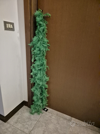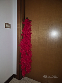 3 Boa di piume colorate uno verde, uno rossa e uno blu.