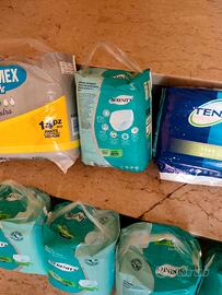 7 pacchi pannolini a mutandina li cedo in blocco x chi potessero servire in omaggio varie sacche urinarie Serenity