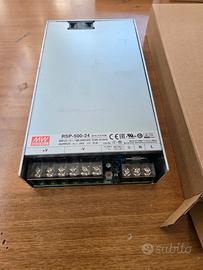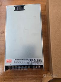 Alimentatore switching Mean Well RSP-500-24. - Potenza: 500W - Tensione di uscita: 24V - Corrente di uscita: 21A - Ingresso: 100-240VAC 5.9A 50/60Hz - Certificazioni: CE, EAC, UL, TUV