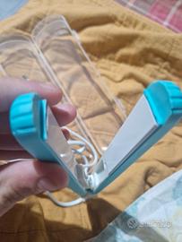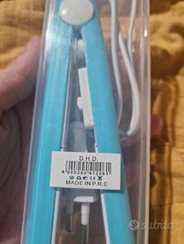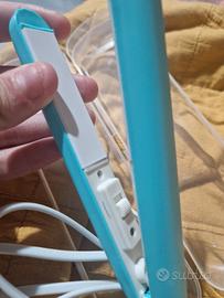 Piastra per capelli compatta, ideale per viaggiare. - Colore blu e bianco. - Custodia trasparente inclusa. - Cavo di alimentazione.
