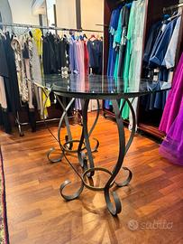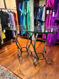 Banco negozio con cristallo alto 1 cm a norma e gambe in ferro colore grigio e oro .. misure lunghezza 1,60 x 80 larghezza x 90 altezza