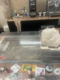 Vendo bancone bar 4 metri completo di pedana retro banco ..vetrina fredda vetrina calda..frigorifero 4sportelli..3899482984