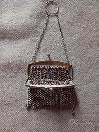 Antico borsellino portamonete dei primi del '900. Lavorazione raffinata in maglia metallica tipica del Liberty Dimensioni 6x6