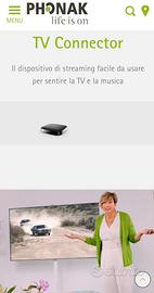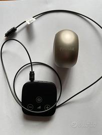 In dotazione guscio per la ricarica e apparecchio per la televisione che si collega tramite bluetooth.