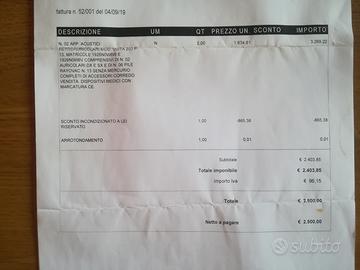 Vendo apparecchio acustico per inutilizzo ed usato solo tre volte come nuovo. Pagato 2500 euro come da fattura.