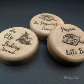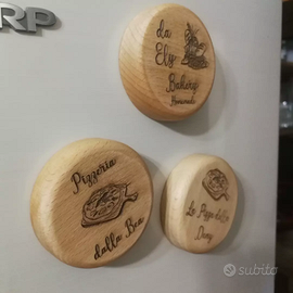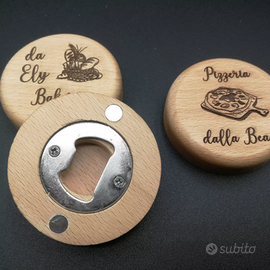 apribottiglie in legno diametro 6.5 cm spessore 1.5 cm personalizzabile con incisione laser da 1 lato.nell altro lato apribottiglie e 2 calamite per poter essere messe sul frigo o dove più vi piace basta che sia ferrosa. ottimo per regalo matrimonio addio al celibato e nubilato o come bomboniera segnaposto