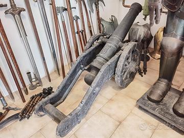 Si dispone di un'armatura, numerose spade e lance di varia tipologia, scudi nonché un cannone come da fotografie.