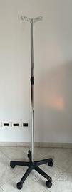 Nuovissima Piantana portaFlebo con base in plastica a 5 razze su ruote. Asta in alluminio a 2 ganci. Regolabile in altezza da 160 a 245. Marca GIMA | Rif.: 1235