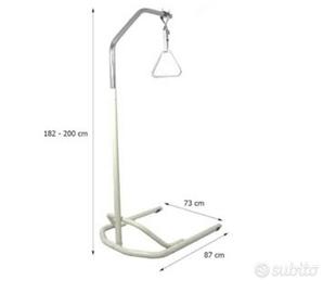 Asta regolabile in altezza con base da terra, autoportante. Made in Italy conforme norme CE (comunità europea) PORTATA MASSIMA 150kg Condizioni ottime. Favorisce l'autonomia: aiuta a moversi senza fare sforzi o chiedere aiuto continuo. Stabile, robusta e pronta all'uso. Non serve fissarla al letto: si sposta dove serve. Condizioni: pari al nuovo ? Ritiro in ZONA vicino Oderzo (TV) Smontabile, misure in foto..
