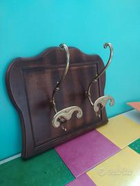 Attaccapanni a muro con base in legno e porta due ganci color oro