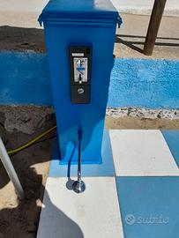 struttura in metallo zincato di 25mq divisa in due blocchi con ruote e timone, bagni e doccie con gettoniera e ufficio