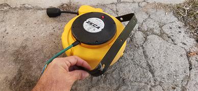 Ho da vendere questo avvolgicavo da officina, da fissare alla parete tramite la sua staffa. Lunghezza del cavo 10mt con funzione stop in qualsiasi punto volete. Io lo utilizzavo in garage per collegarci diversi attrezzi. Preferisco il ritiro a mano.
