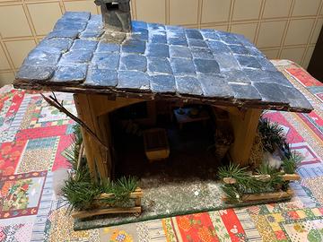 Bellissima riproduzione di una baita di montagna,arredata con tavolo apparecchiato,panca,camino ed accessori. Tetto in tavole di ardesia. Misure:cm.50 x 40 -altezza cm.40. Capolavoro di artigianalità.