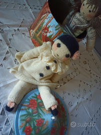 Vintage degli anni 60 due bambole in lana fatte a mano dalla nonna, alcuni punti ripresi per la lana che aveva ceduto, abiti e pupazzi puliti alti 37 cm il prezzo è per uno oltre sarà addebitato il costo della spedizione.