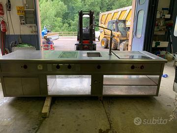 Banco primi composto da tuttopiastra a due zone, bollitore, piano induzione 2 zone e scaldapiatti...