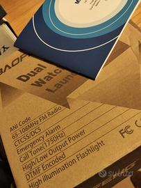 Ricetrasmittente UV-82 versione con batteria a lunga durata da 7.4 V e 2.800mA RX-TX 136.000-174.000 MHz RX-TX 400.000-520.000 MHz Potenza 8 Watt Sintonizzatore FM 88-108 MHz Call tone 1750Hz DTMF encoded Toni CTCSS/DCS ANI Code Doppio tasto PTT per poter utilizzare la banda interessata Display con doppia lettura delle frequenze Shift ponti radio Programmabile anche da PC Salva batteria = finta batteria con presa da accendisigari. Antenna 136.000-480.00 MHz Custodia di sicurezza dedicata a questo modello.