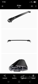 Vendo barre autoTHULE Wingbar Edge...NERE...le più belle della linea THULE. Restano perfettamente a filo sia lateralmente che a sfioro sopra Senza disturbare la linea nella vettura e la areodinamicità . Perfette per classici bussolotti . Io li ho montati su una wv Tiguan ma sono adattabili per diverse auto ( wv Caddy o Ford tourneo connect Non compatibile... è quello che ho adesso ) Per verificare la compatibilità di seguito indico i codici originali del prodotto... 958120. railing. 9581 B Misura escursione interna nr.1 barra 100cm\110cm Misura.escursione Interna nr 2'barra 105 cm/ 115cm. complete di tutto,2chiavi,1 rondella per serraggio al tetto e 4 supporti ...Super semplici da istallare e togliere Prezzo NUOVE 440....vendo 200€... Disponibile per consegna a mano con punto di incontro provincia di Bergamo