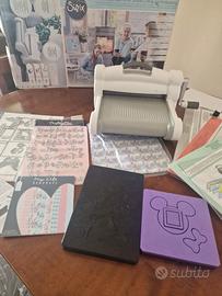 Big Shot Plus SIZZIX, starter kit, compreso stoffa e carta, tutto nuovo. +fustella porta ritratto di Minnie e Topolino +fustella lettere alfabeto e numeri font elegant. Usata una sola volta, praticamente nuova.